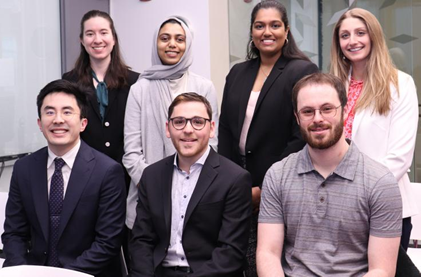 Campus Visit to Johns Hopkins University on Apr 1: Front row (l-r): Scholars Alexander Lu, Zachary Gold and Ariel Slepya. Back row (l-r): Rebecca Baxter, Sabahat Rahman, Akshaya Annapragada and Sydney Shannon.