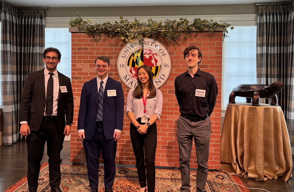 Campus Visit to University of Maryland (l-r): Scholars Eman Mirdanmadi, Patrick Bannon, Emily Powsner and 2025-26 Scholar Kieran Barvenik.